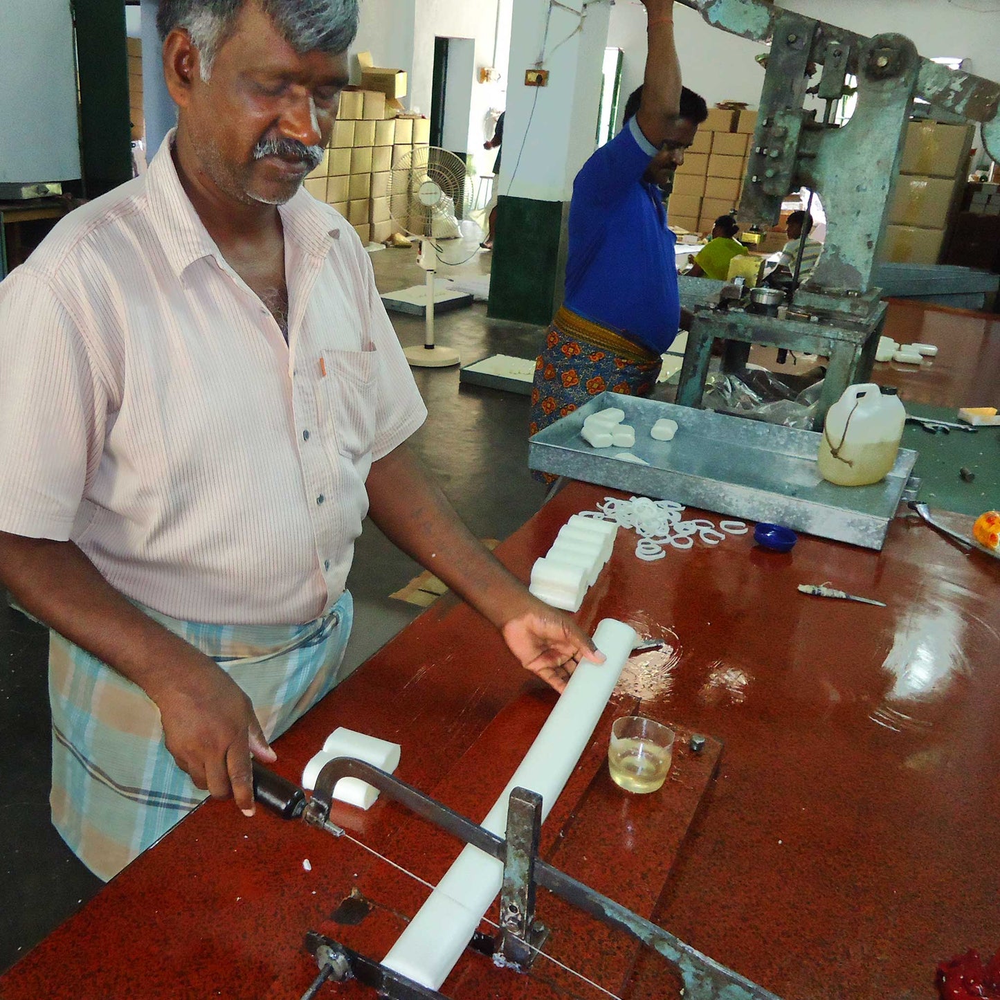 Handcrafted in small batches by traditional soap makers in Tamil Nadu, India. One bar of soap sends one child to school for one day.